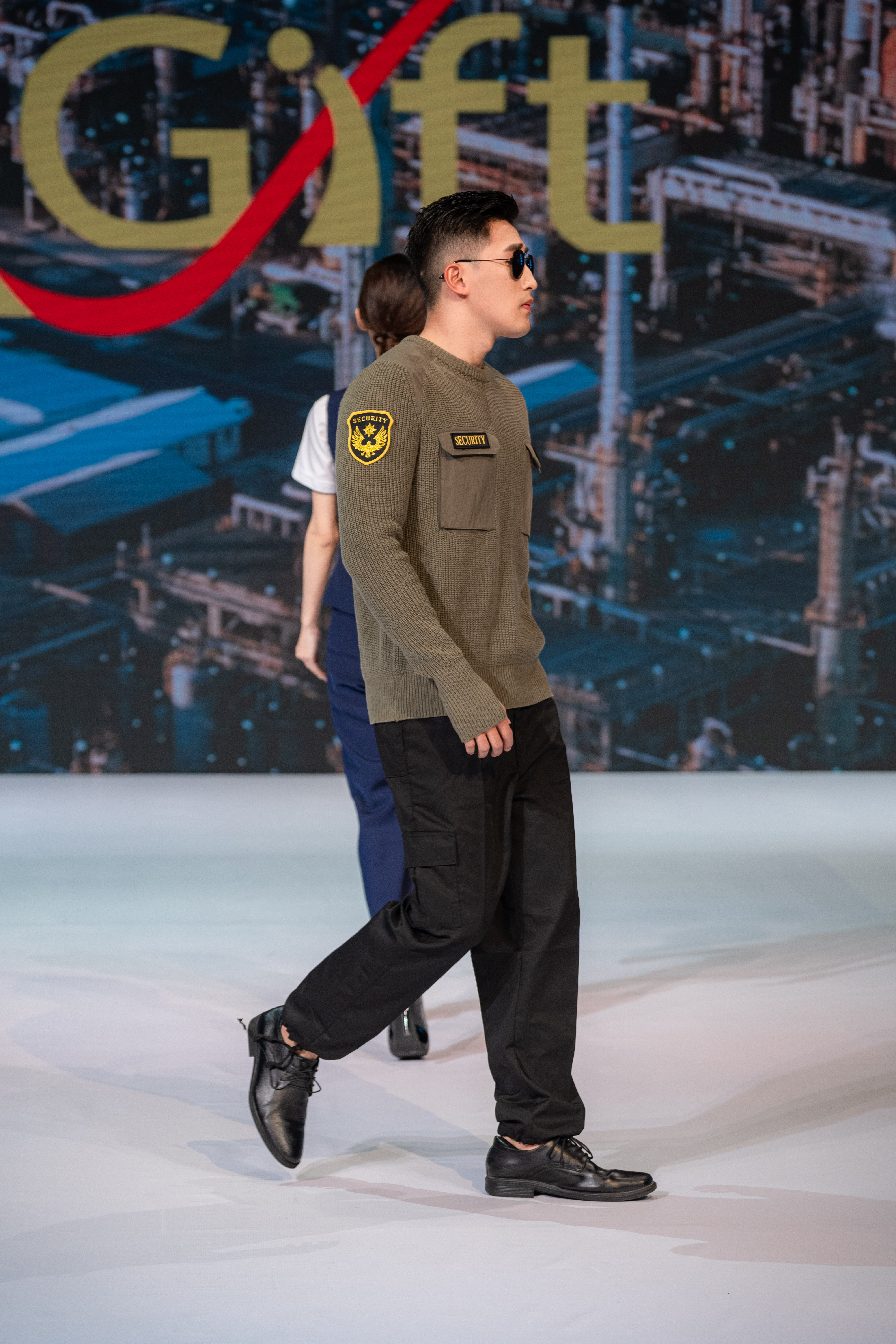 - BD-MO-021 Design Fashion Dark Green Security Sweater, Custom-made Sweater with Pocket on Chest, Real People Try on Model Demonstration Security Sweater Design Company