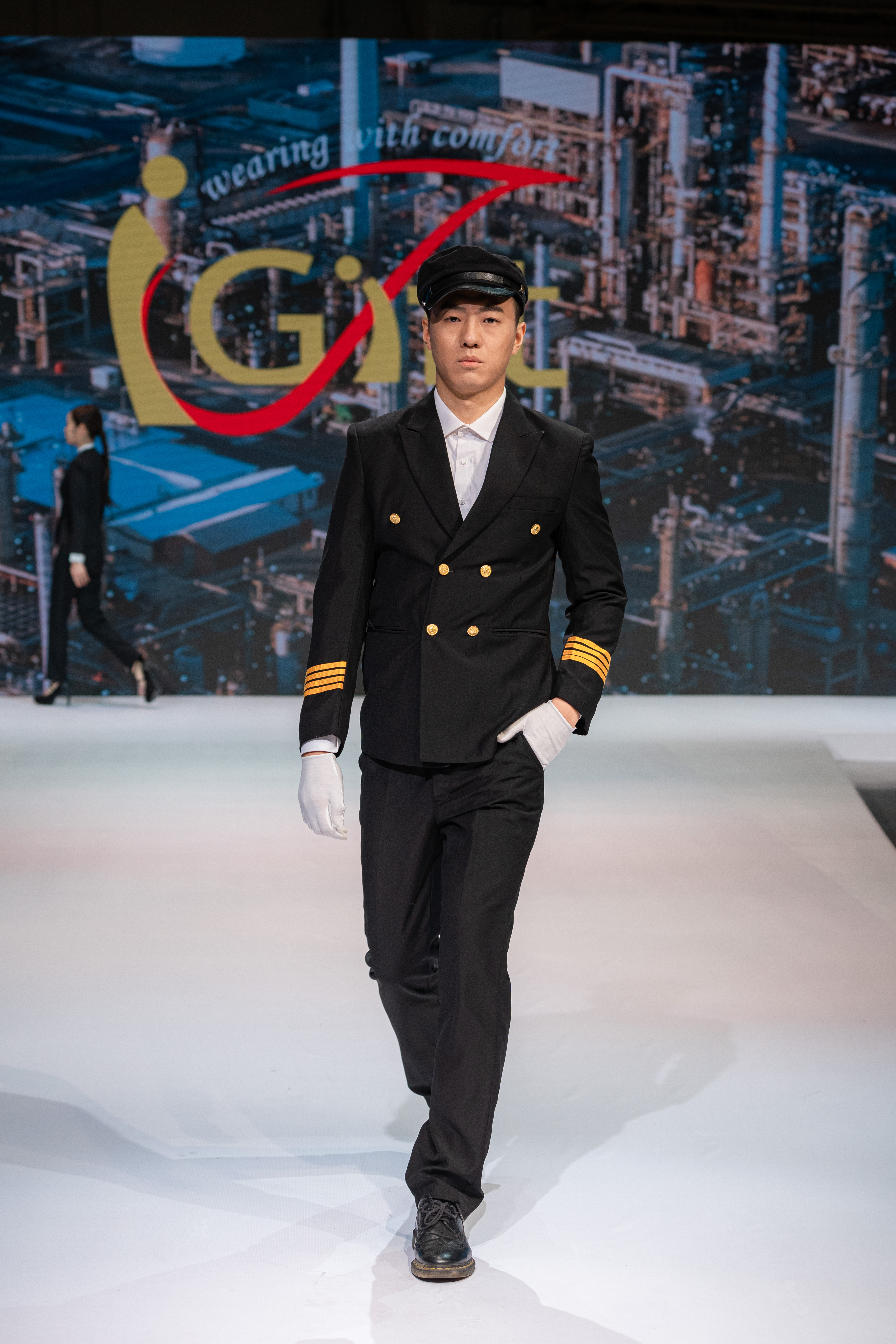 - BD-MO-120 Customized Driver Uniform Model Display Designed Sleeve Gold Strips Gold Buttons Driver Uniform Center Real Model Show