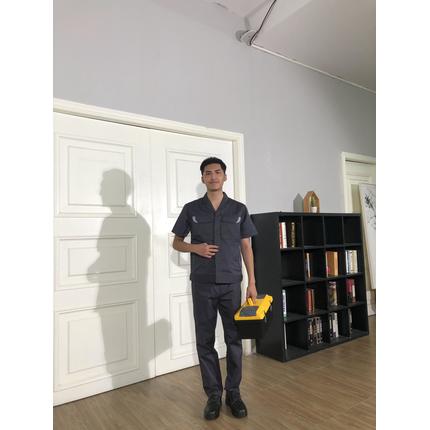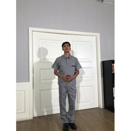Nome: Expositor de modelo de uniforme de manutenção de hotel personalizado e resistente ao desgaste uniforme de lapela personalizado meia botão tórax com listras fluorescentes calças de costura fornecedor de uniforme de manutenção de hotel