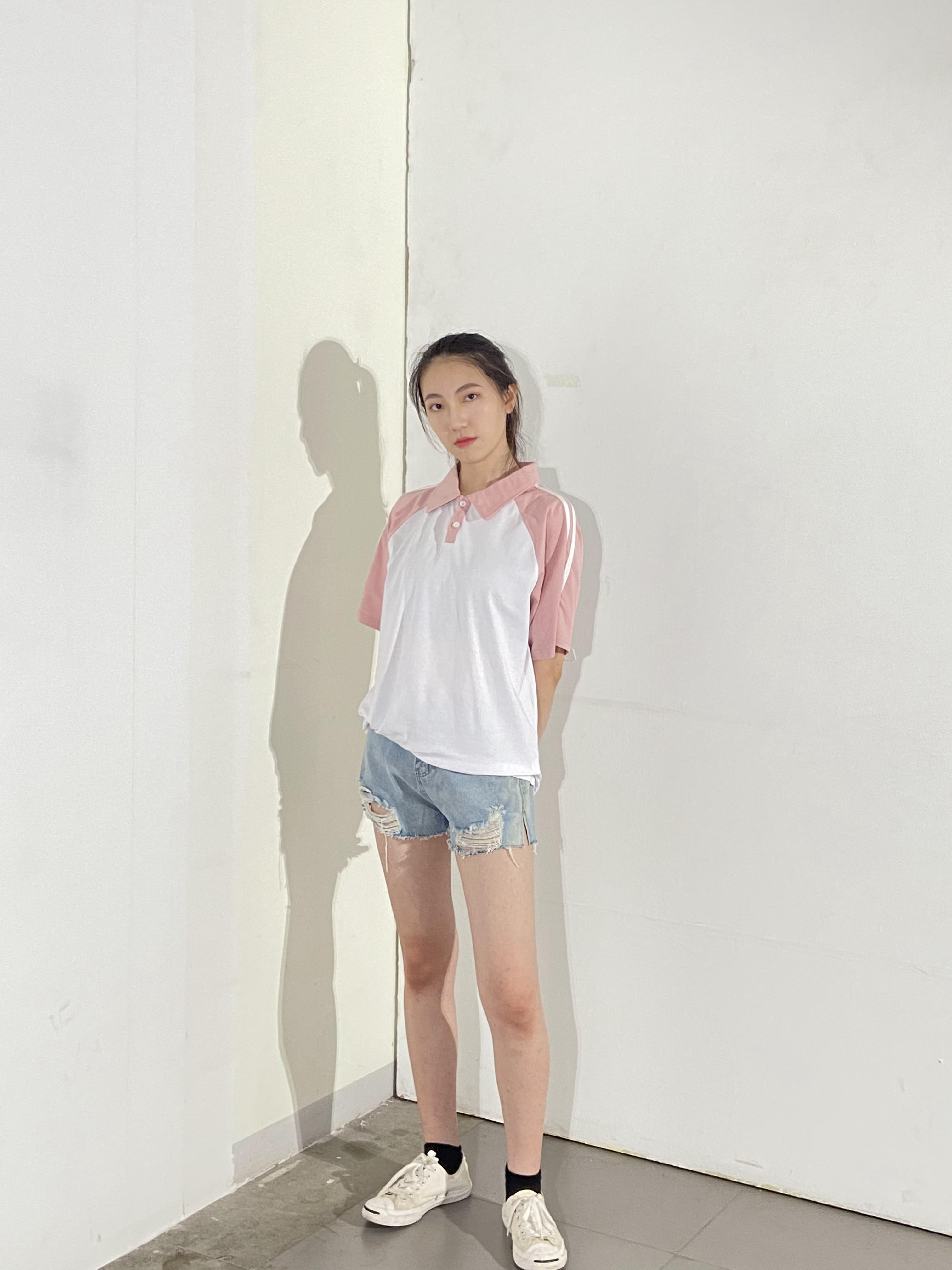 名稱: 定制白色和粉色短袖 polo 衫,設計立領 polo 衫,現場表演 POLO 衫供應商